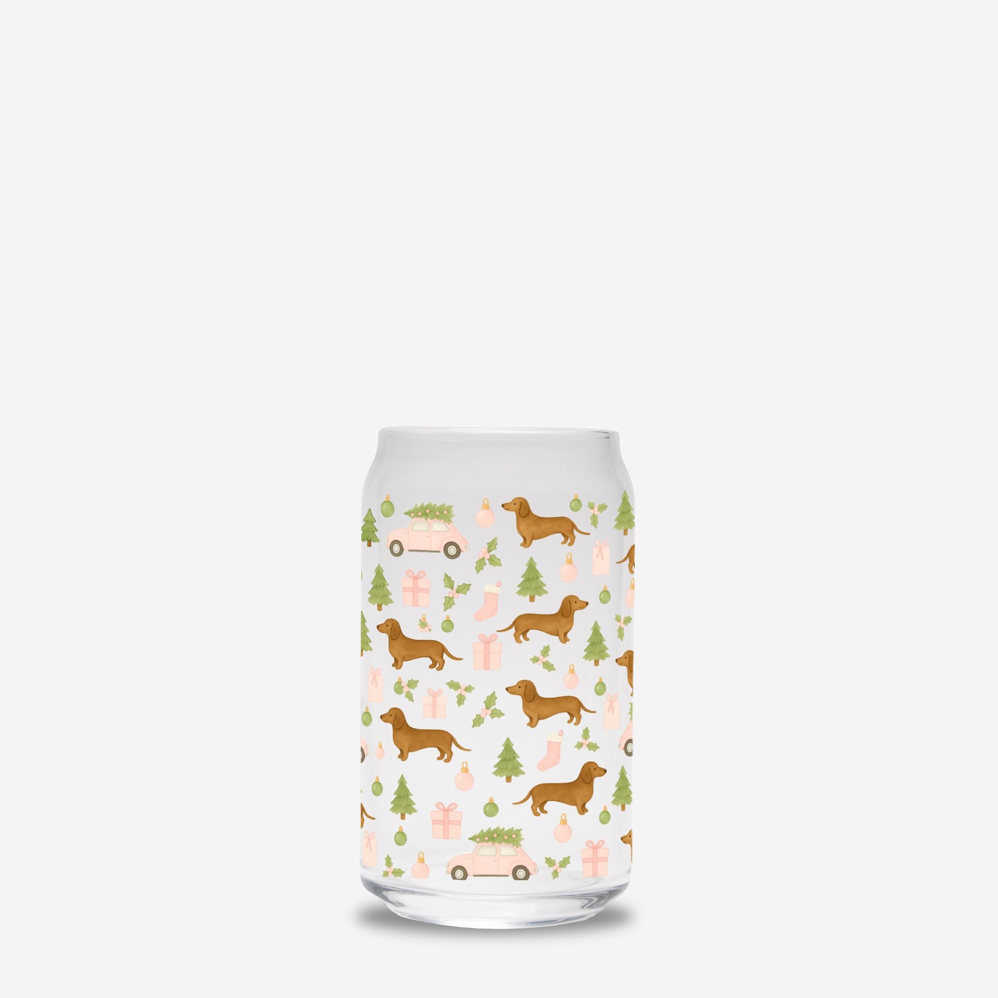 Introducing the Can Shaped Glass - Rustic Christmas Wiener Wonderland, where festive charm meets canine whimsy! Delight in this beautifully crafted glass adorned with a vintage dachshund Christmas pattern, perfect for adding a sprinkle of joy to your holiday gatherings. Whether you're sipping hot cocoa or indulging in seasonal cocktails, this delightful piece is sure to be a conversation starter among fellow dog lovers. Choose to enhance your experience with our convenient straw and lid option, ensuring your drink stays fresh and spill-free as you toast to the season. Part of our exclusive Christmas 2025 collection, this glass is designed for dog owners who celebrate the magic of the holidays with their beloved furry companions. Bask in the warmth of the festivities and let this charming glass bring a touch of wiener dog wonder to your holiday celebrations!