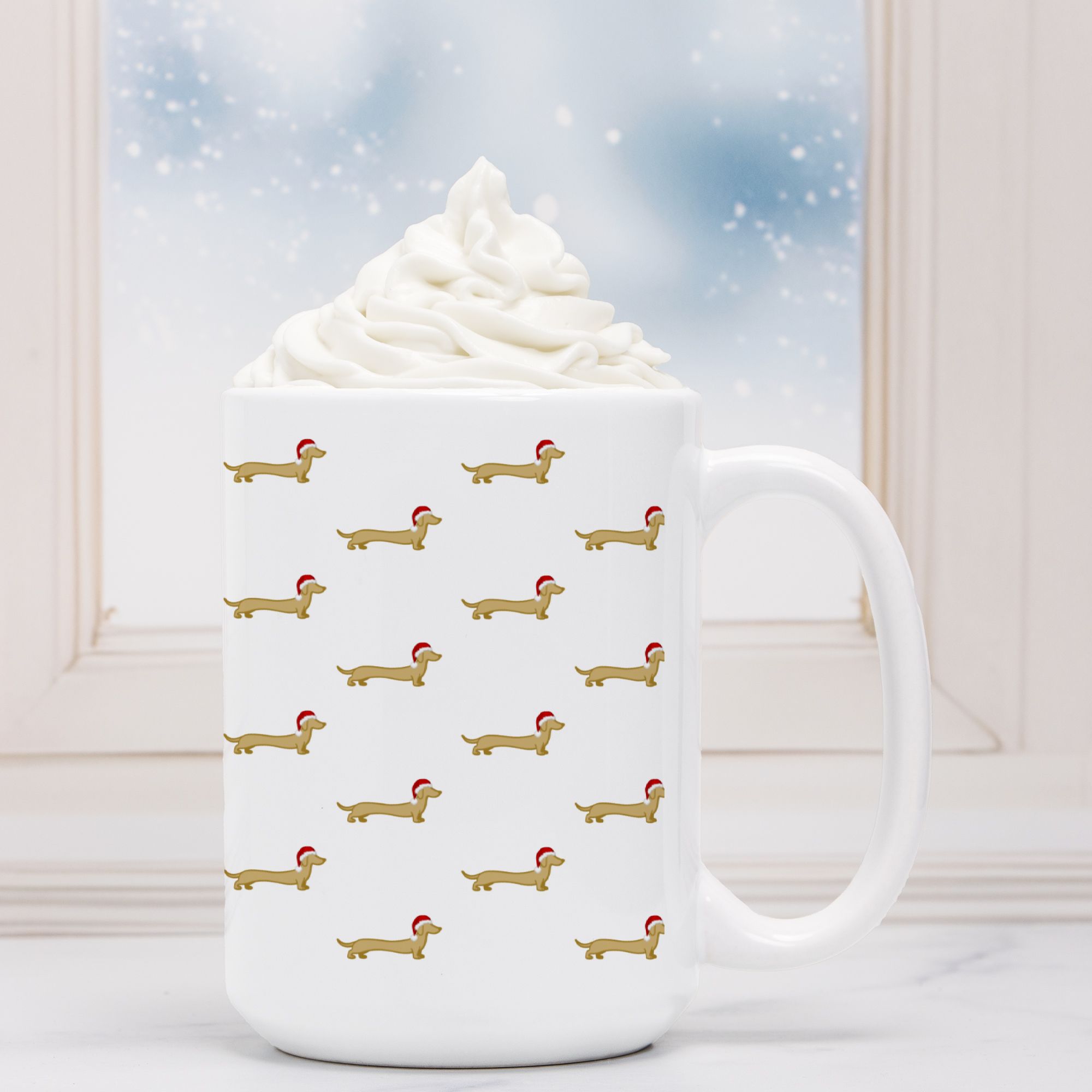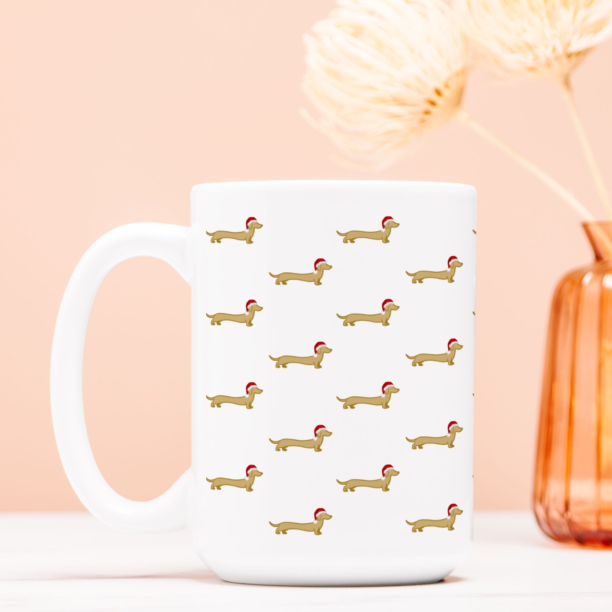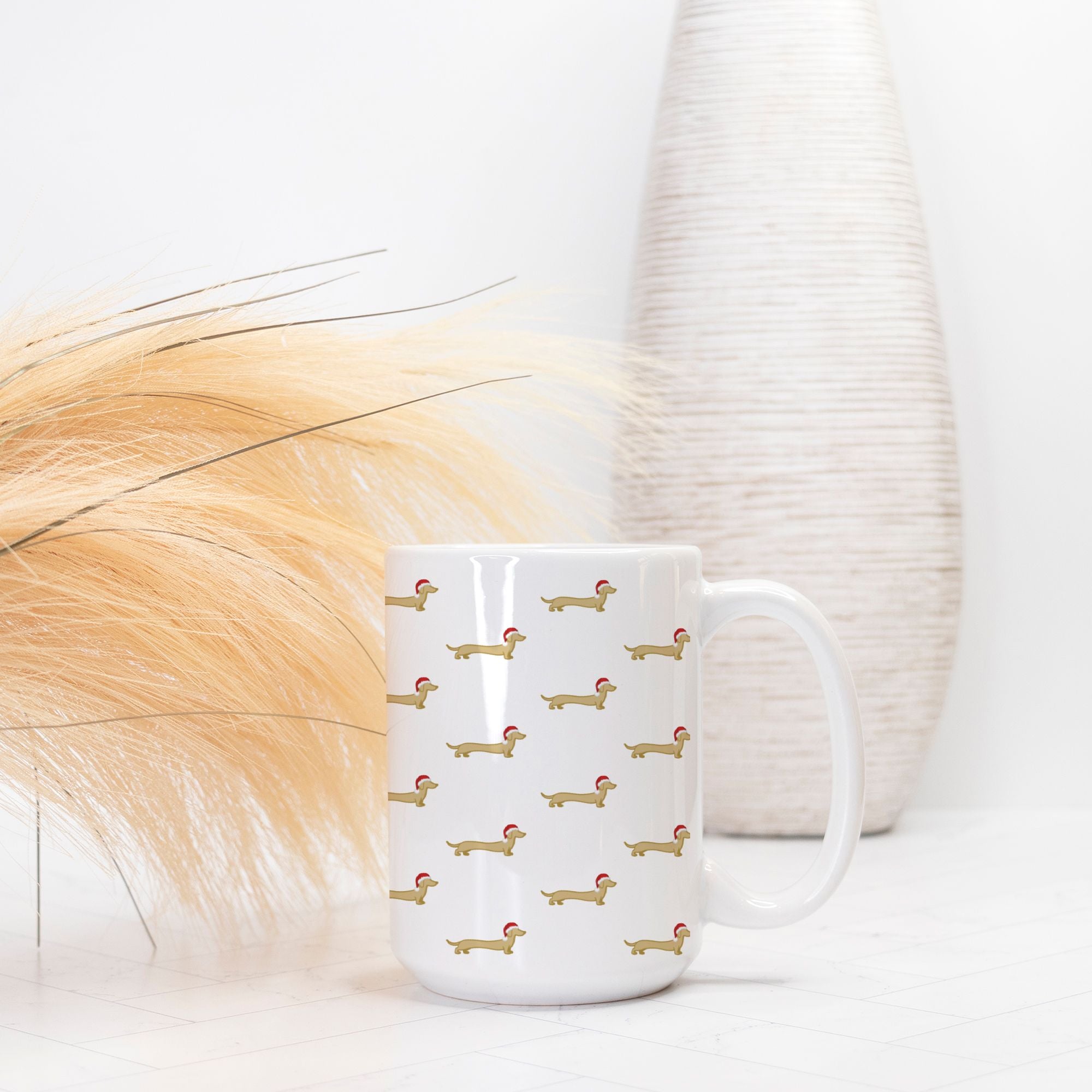 Embrace the festive spirit with our charming "Christmas Coffee Mug - Dach Of Gold Green Coquette." This delightful 15oz white ceramic mug showcases our best-selling design featuring whimsical gold dachshunds adorned with festive green bows, making it a perfect companion for your cozy winter mornings. Ideal for dog owners who appreciate the playful elegance of their furry friends, this mug radiates holiday cheer with every sip. Whether you're enjoying a warm cup of cocoa or your favorite holiday brew, it adds a touch of charm to your festive rituals. Part of the exclusive Christmas 2025 collection, this mug is not just a vessel for your beverage but a delightful reminder of the joy pets bring to our lives. Treat yourself or surprise the dog lover in your life with a gift that captures the magic of the season. Celebrate the holidays with a little Dachshund flair!
