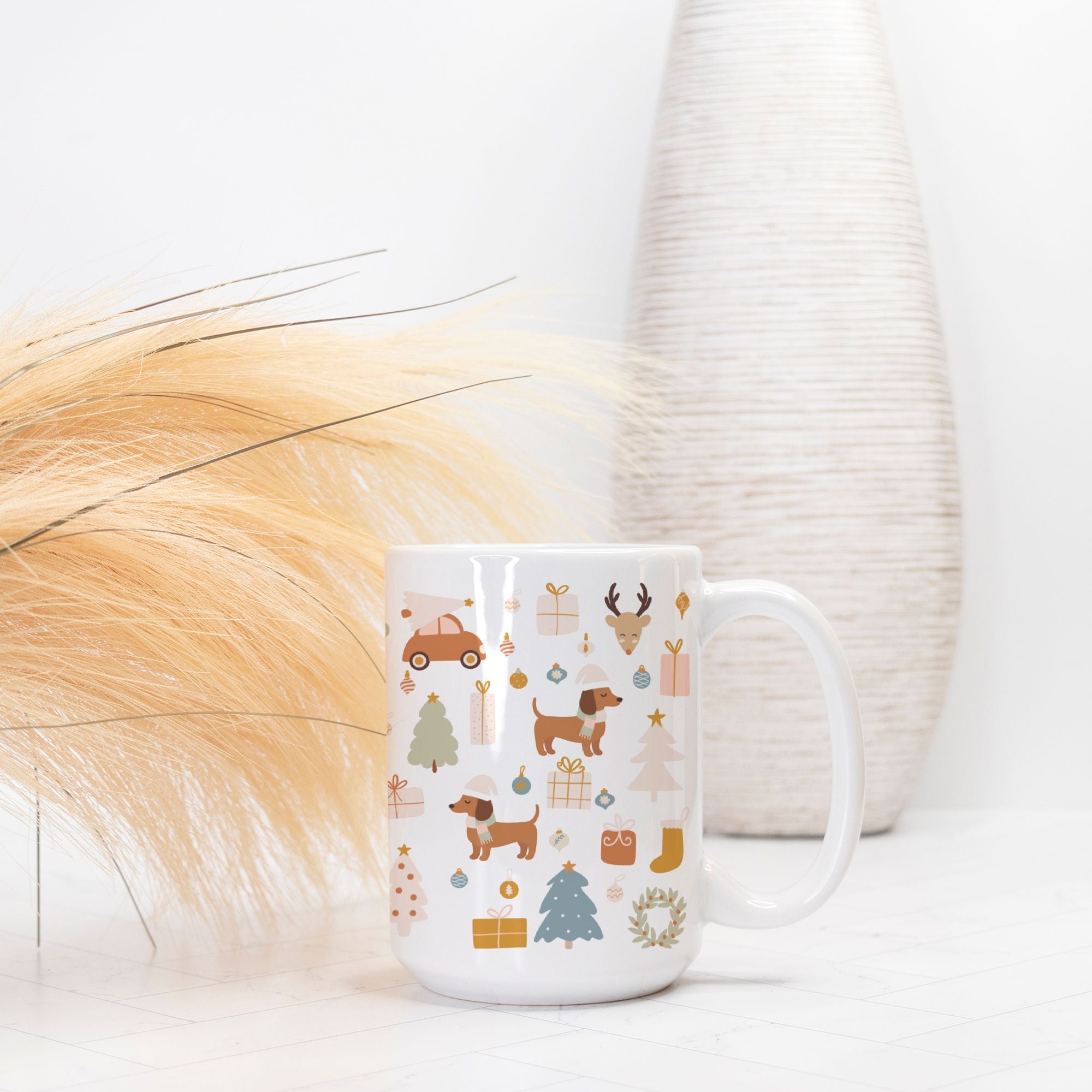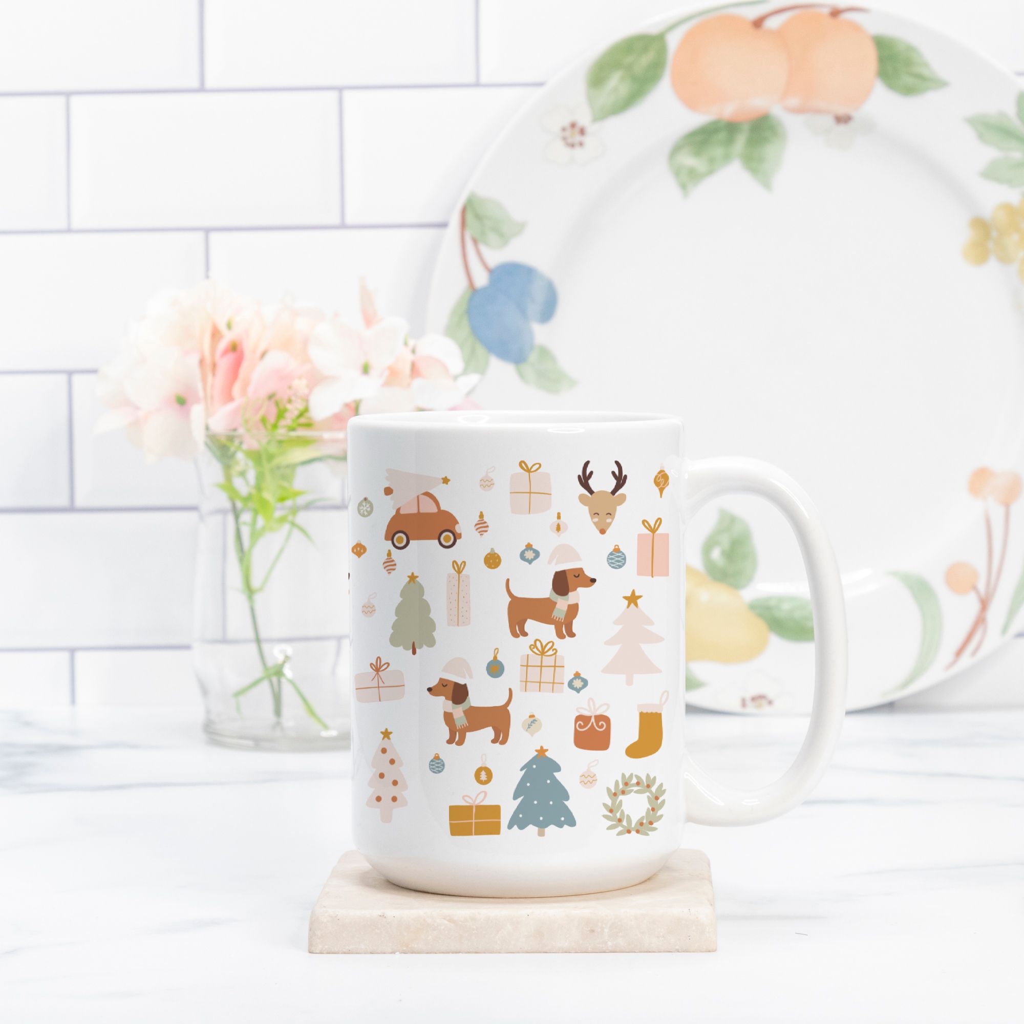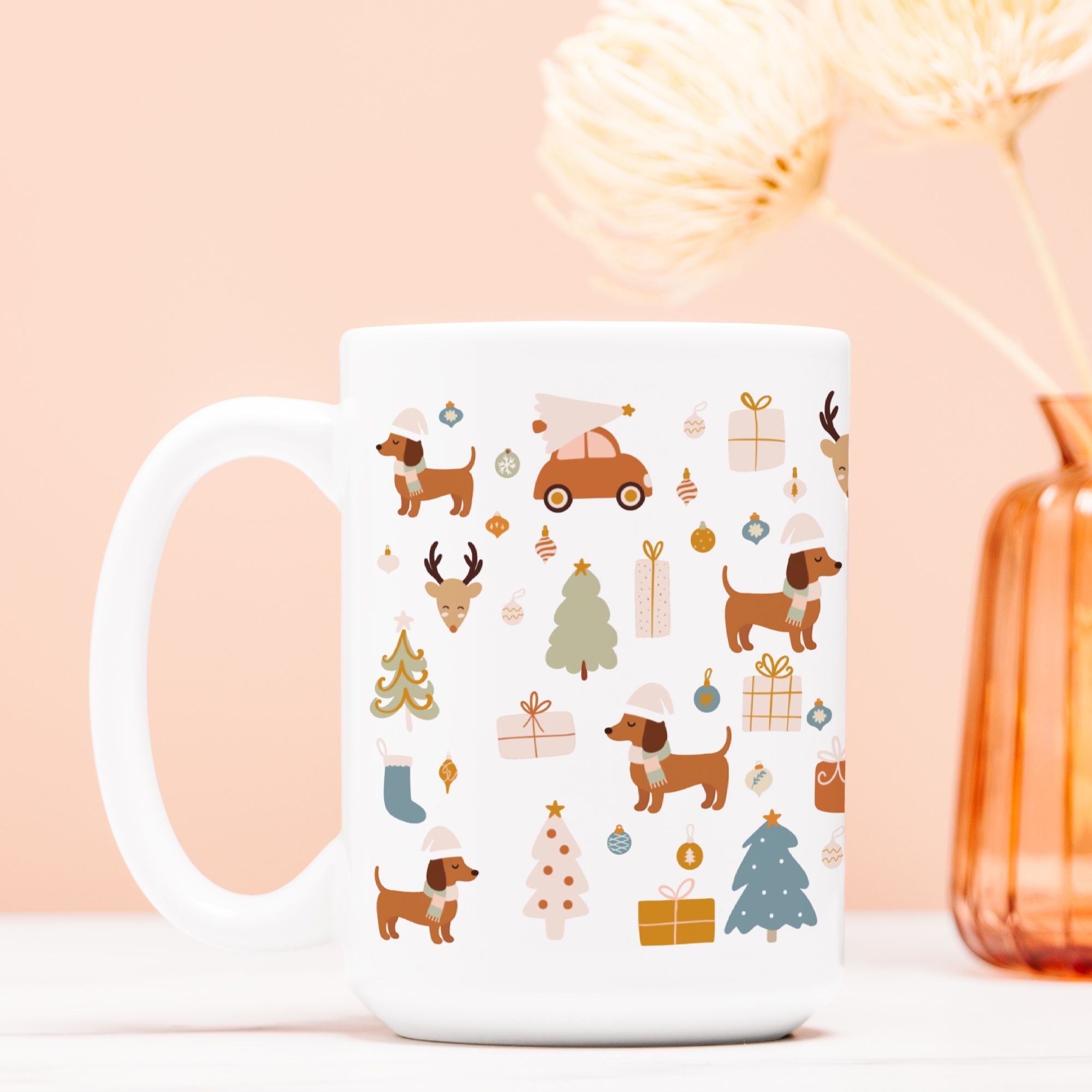 Embrace the warmth of the holiday season with our Christmas Coffee Mug - Doxie Christmas Toile. This charming 15oz white...