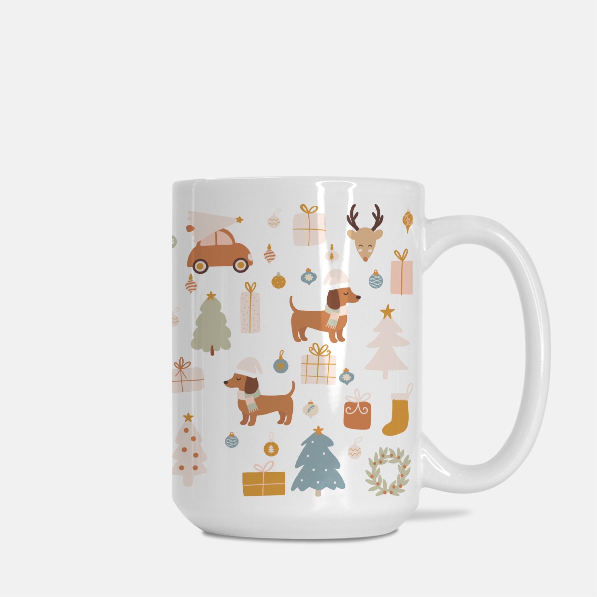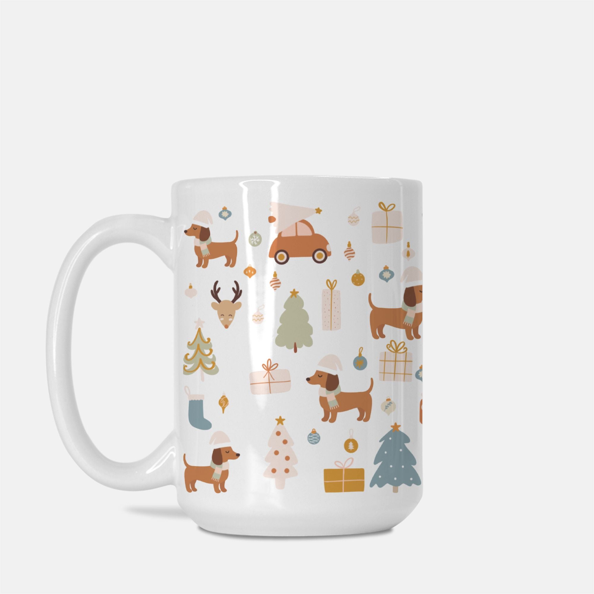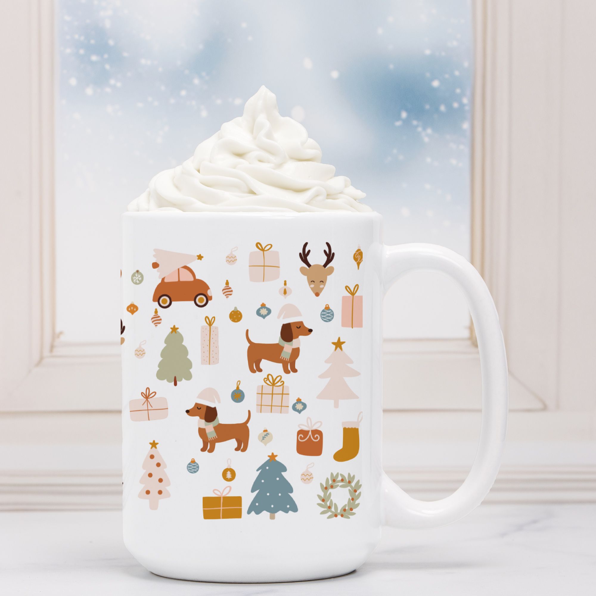 Embrace the warmth of the holiday season with our Christmas Coffee Mug - Doxie Christmas Toile. This charming 15oz white...