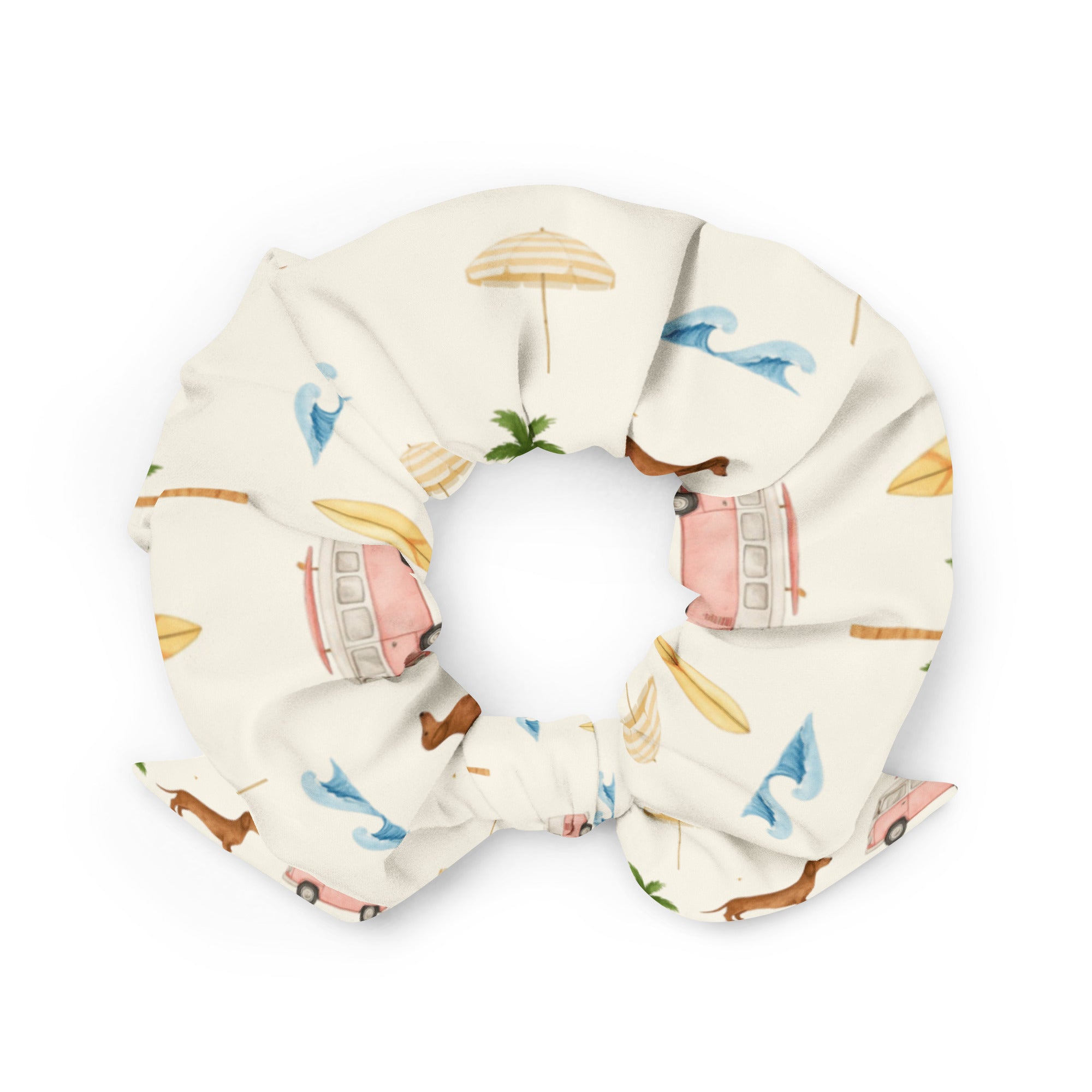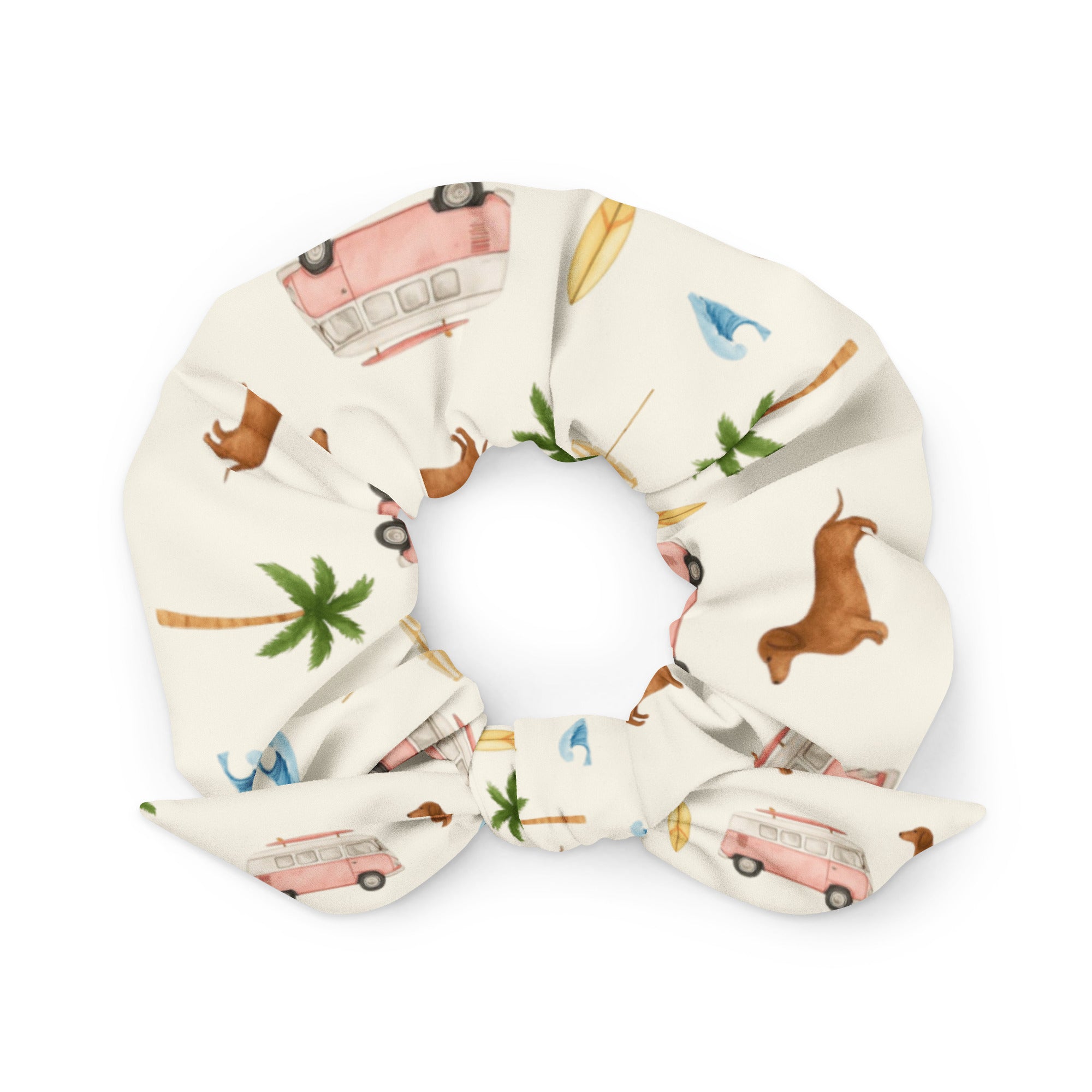 Recycled Scrunchie with Removable Bow - Beach Cruisin' Wiener Dogs