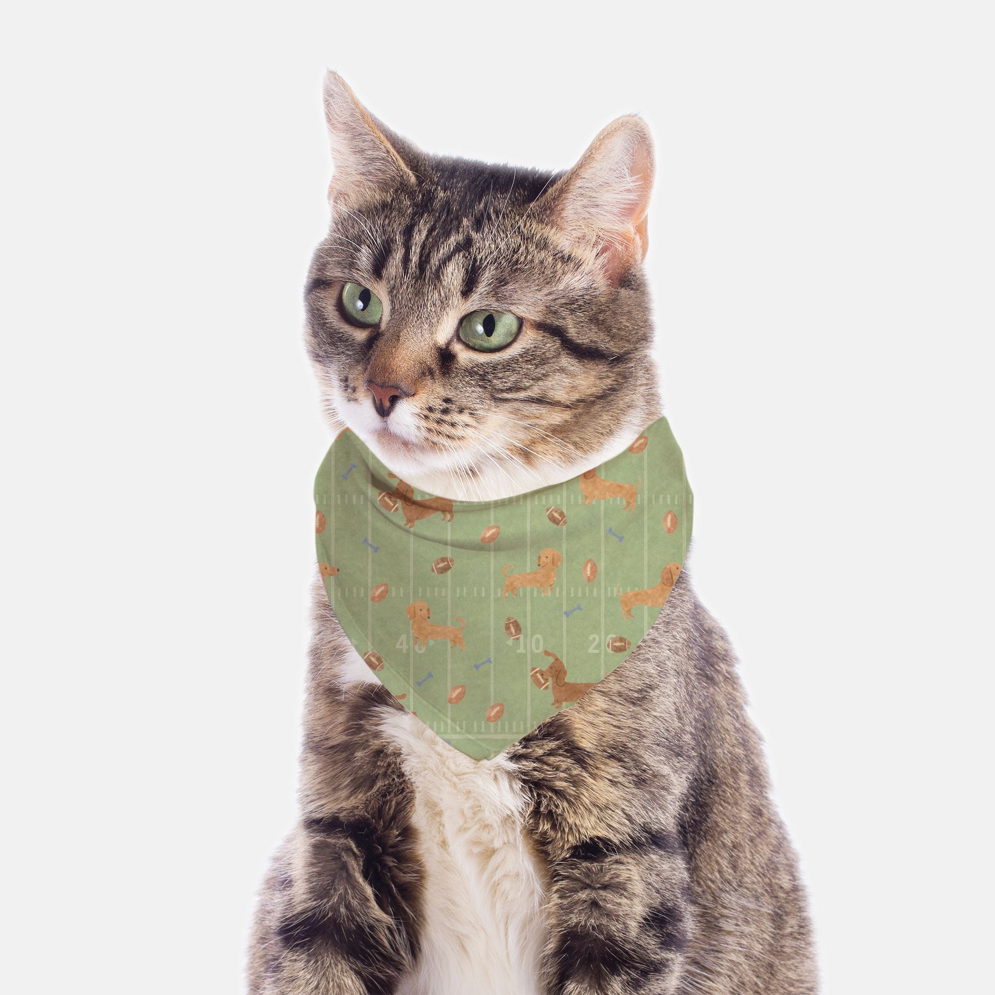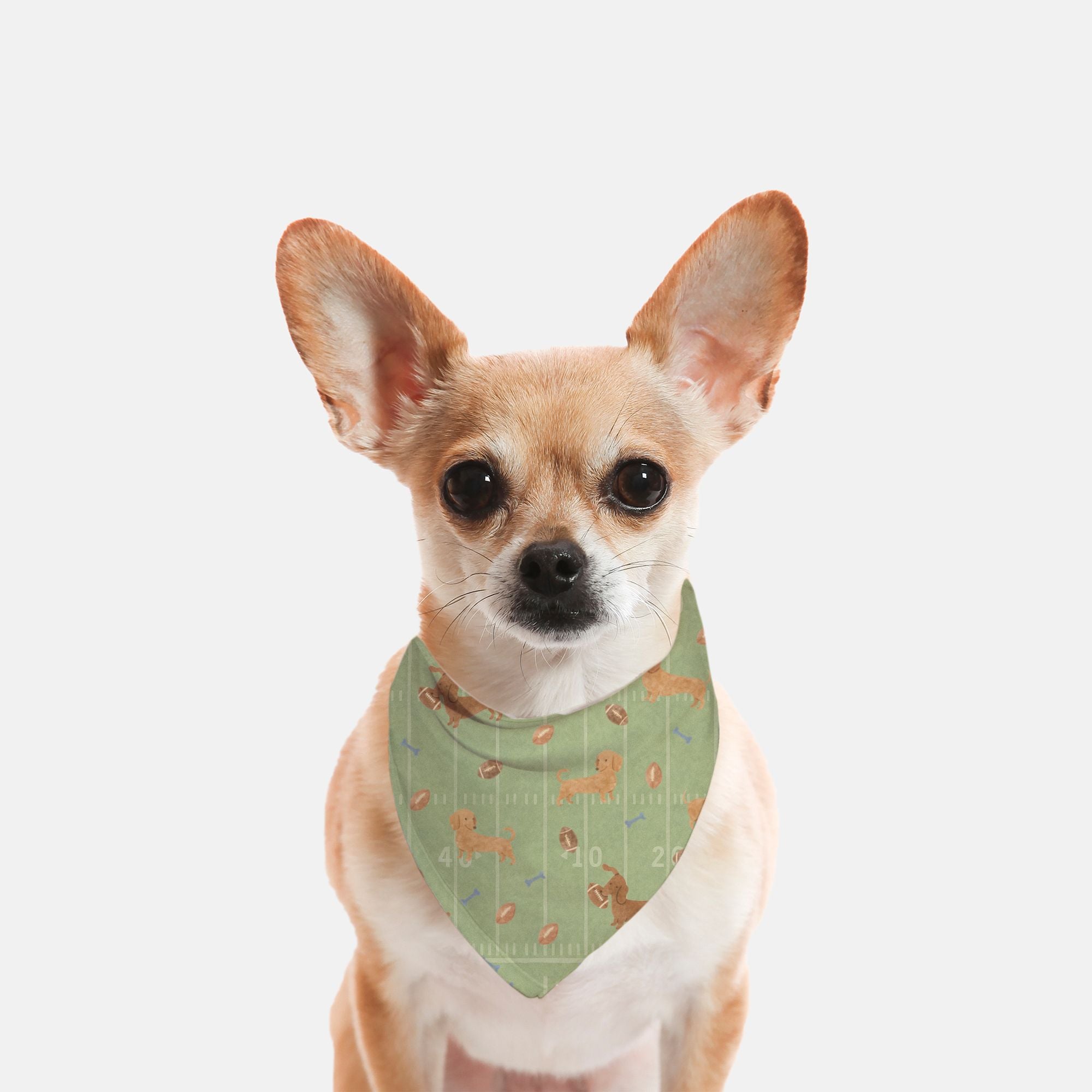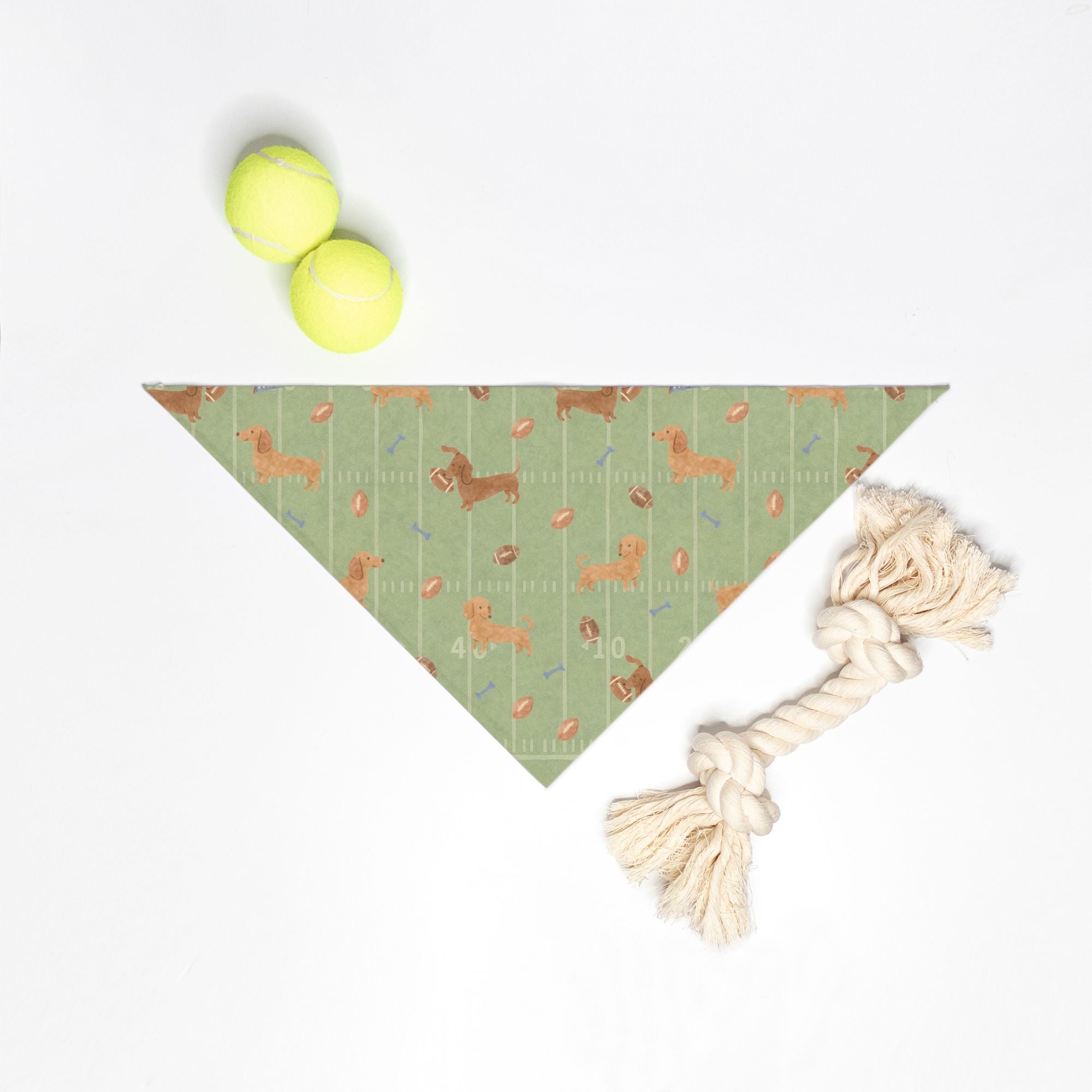 Get your pup ready for the ultimate tailgating experience with our Dachshund Tie On Bandana – Touchdown Dachshunds! 🏈🐾 This adorable accessory features a charming fall print of wiener dogs chasing footballs, with playful bones scattered across a vibrant football turf backdrop. Perfect for those crisp autumn days, this bandana is a must-have for small breed dog owners who want their furry friends to sport the cutest game-day gear in town! Whether you're cheering from the sidelines or home on the couch with snacks, your pup will be the star of the show. Plus, it’s a fashionable way to celebrate the season—because let's face it, every dog deserves to feel like a champion! Grab one and watch your little touchdown tease steal hearts and snacks alike! 🍂🐶⚡️