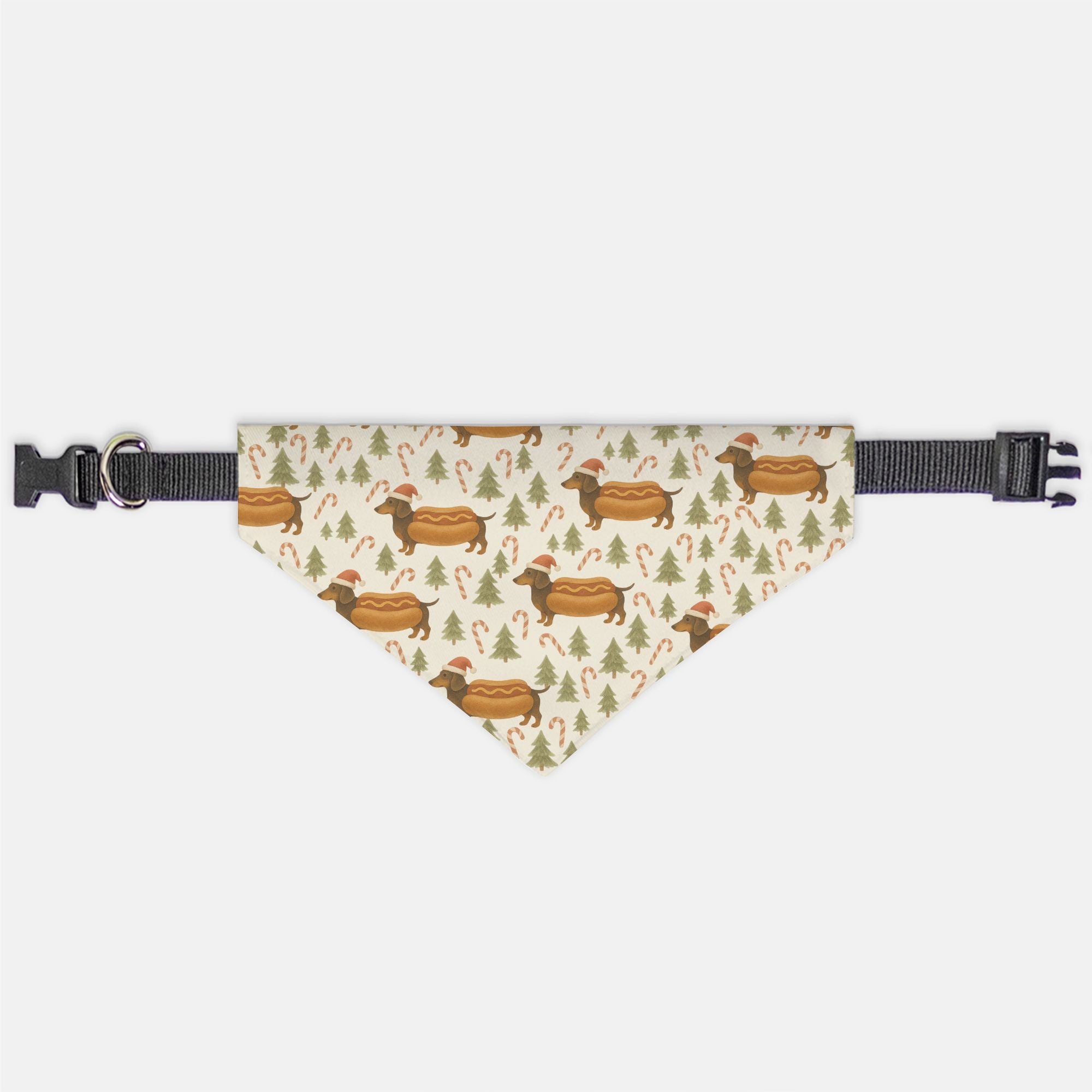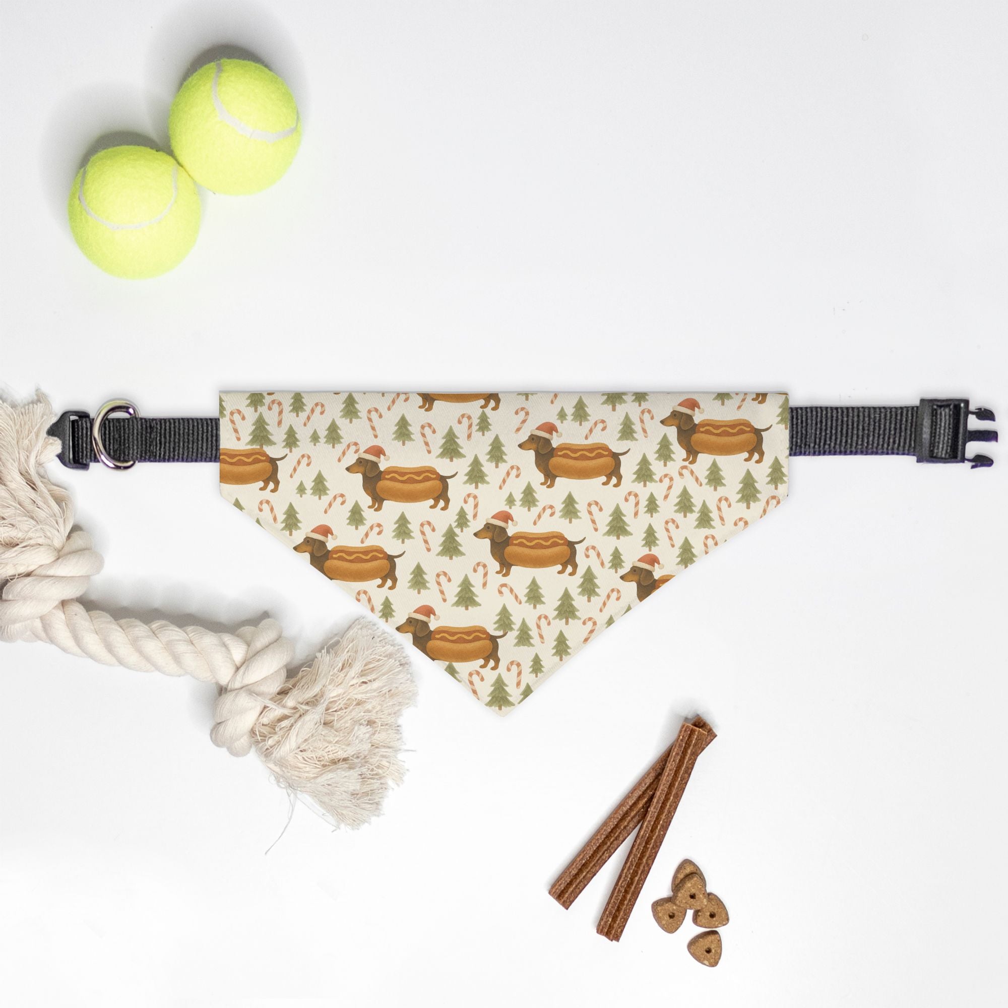 Introducing the On Collar Dog Bandana - Dachshund Through the Bun, where holiday cheer meets playful charm! This delightful accessory radiates festive spirit, perfect for dressing your beloved pup in style for Christmas. Featuring adorable dachshunds transformed into hotdogs, complete with whimsical Santa hats, it’s a fun way to showcase your dog’s personality while spreading joy to everyone around. Available in sizes S and M, this bandana effortlessly blends comfort with eye-catching design, making it a splendid addition to your dog’s wardrobe. Part of our exclusive Christmas 2025 collection, this bandana is not just a fashion statement; it’s a celebration of the season—a delightful icebreaker for holiday gatherings and photo ops. Transform your furry friend into the life of the party and let them join in the festive fun with this one-of-a-kind collar bandana. Make this Christmas memorable with a touch of whimsy that only dachshunds can deliver!