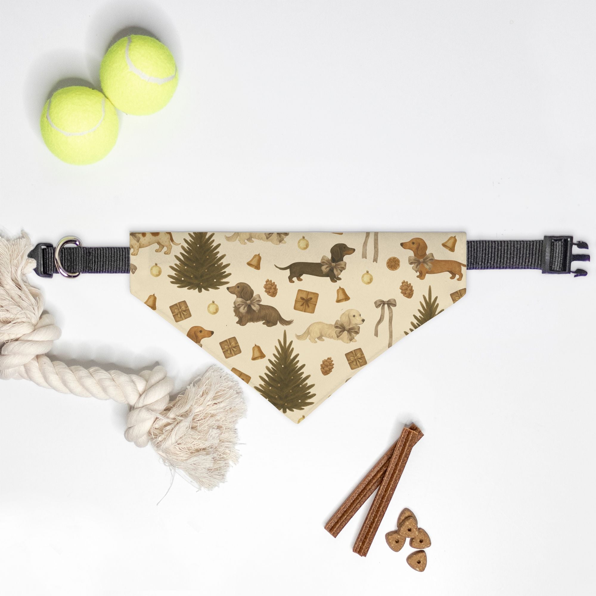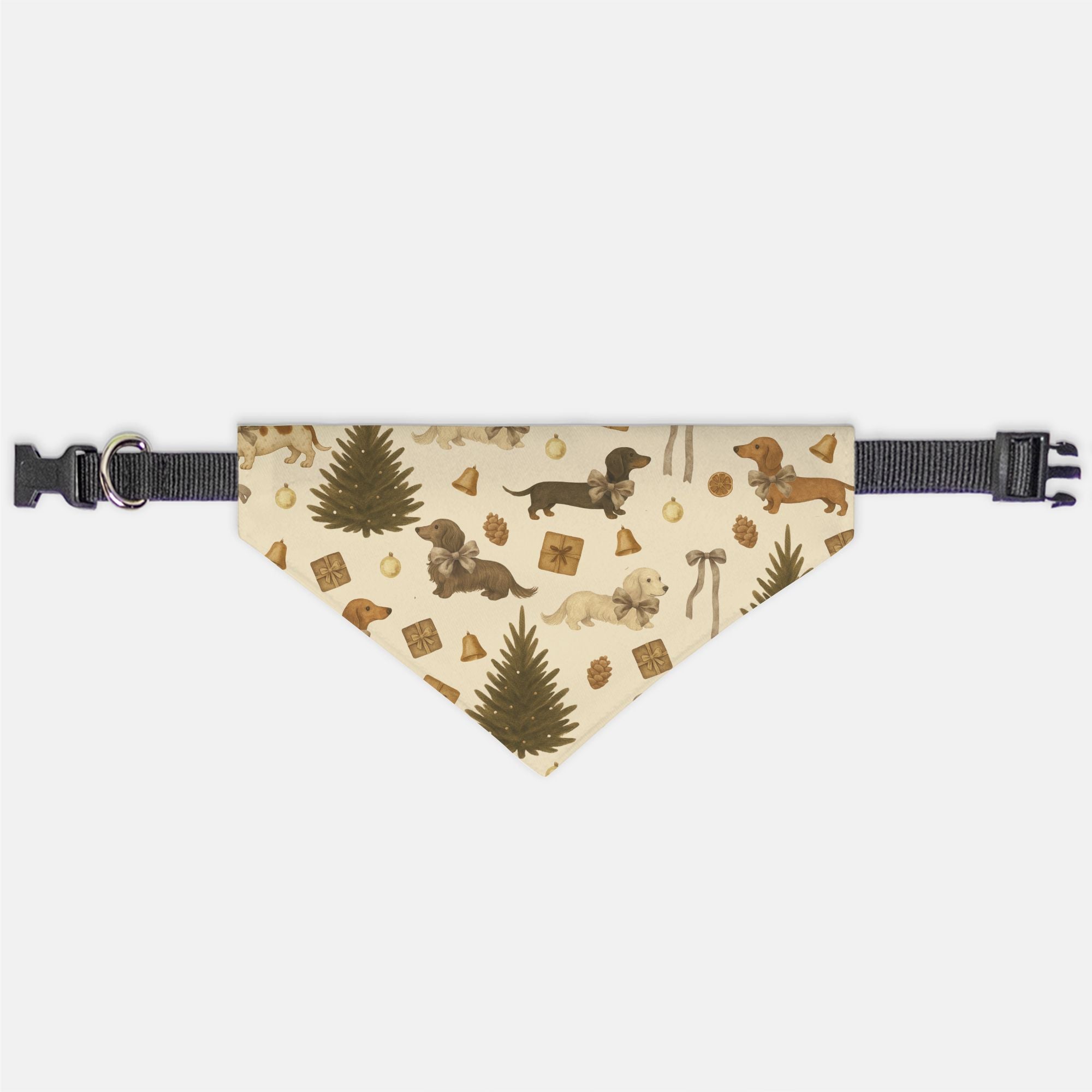 Embrace the festive season with our enchanting On Collar Dog Bandana - Rustic Dachshund Coquette Christmas! Perfectly charming for your beloved canine, this delightful bandana features a vintage dachshund pattern showcasing both long-haired and short-haired pups adorned with whimsical bow coquette details. Available in sizes Small and Medium, this bandana effortlessly attaches to your dog's collar, ensuring a snug and stylish fit for every adventurous tail-wagger.
