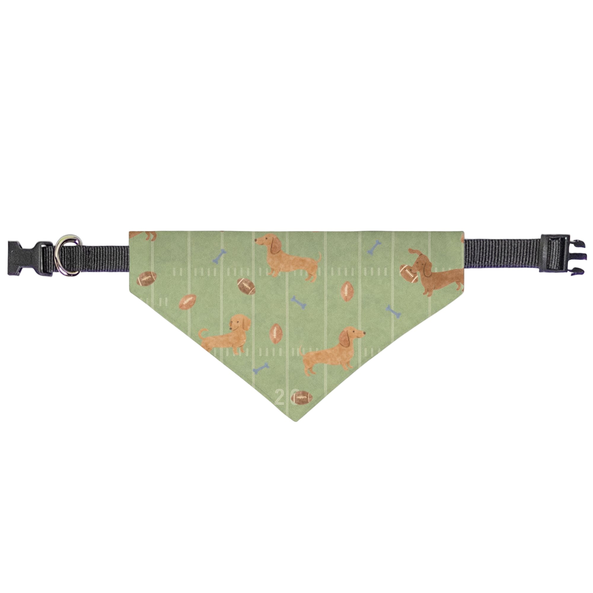 Celebrate the cozy charm of fall with our "On Collar Dog Bandana - Long-Haired & Short-Haired Dachshund Mix Print." This...