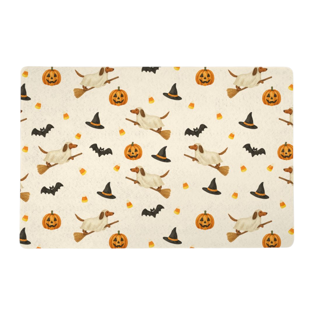 Celebrate this Halloween in style, surrounded by the warmth of your dachshund's playful spirit and the joy it brings to your life. With the Pet Grub Mat - Happy Halloweenie, every dog food meal becomes a festive occasion filled with love, laughter, and a hint of spooky fun. Treat your dog—and yourself—to this adorable decoration that seamlessly combines function with charm and makes mealtime a hauntingly good time!
