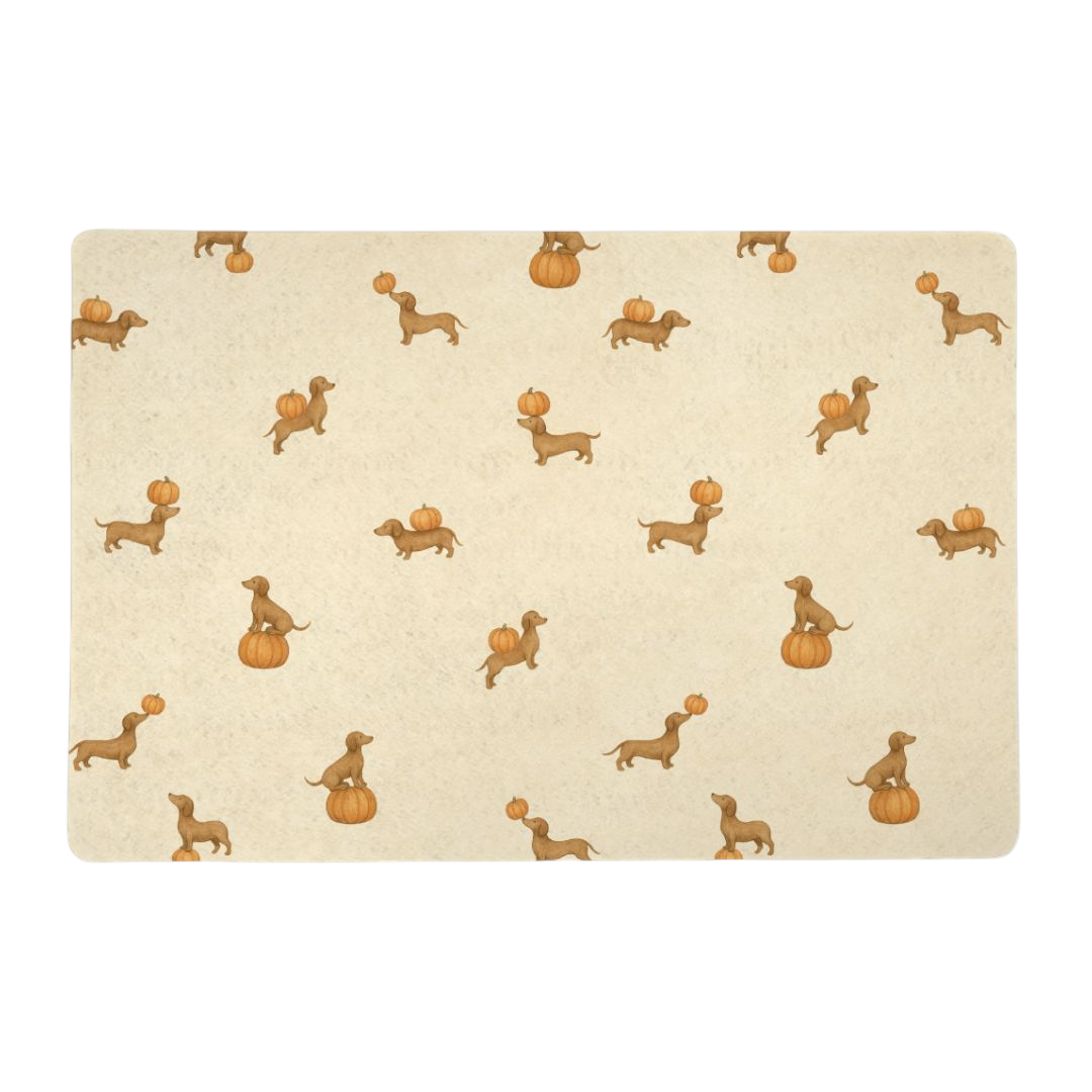 Introducing the Pet Grub Mat - Pumpkin Pup Parade – Autumn Dachshund Print, where fall festivities meet delightful doggy design! 🍂🐾 This charming mat features an adorable dachshund pattern that will make every feeding moment a quirky celebration of autumn. Imagine your furry friend dining in style as these playful pups balance pumpkins on their heads, sit proudly atop them, and carry them on their backs! 🎃✨