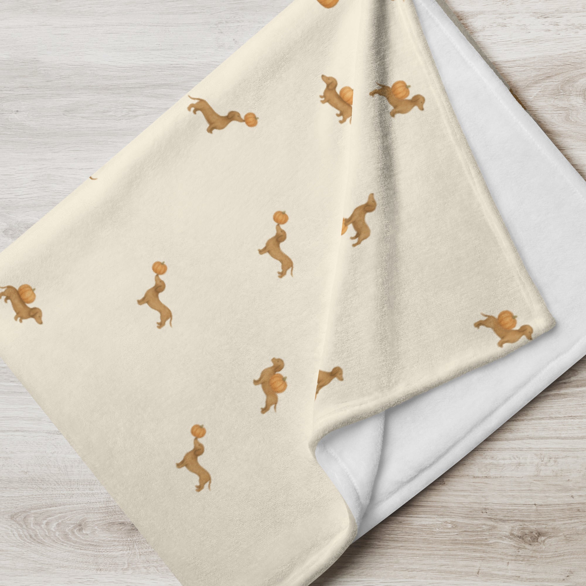Throw Blanket - Pumpkin Pup Parade – Autumn Dachshund Print