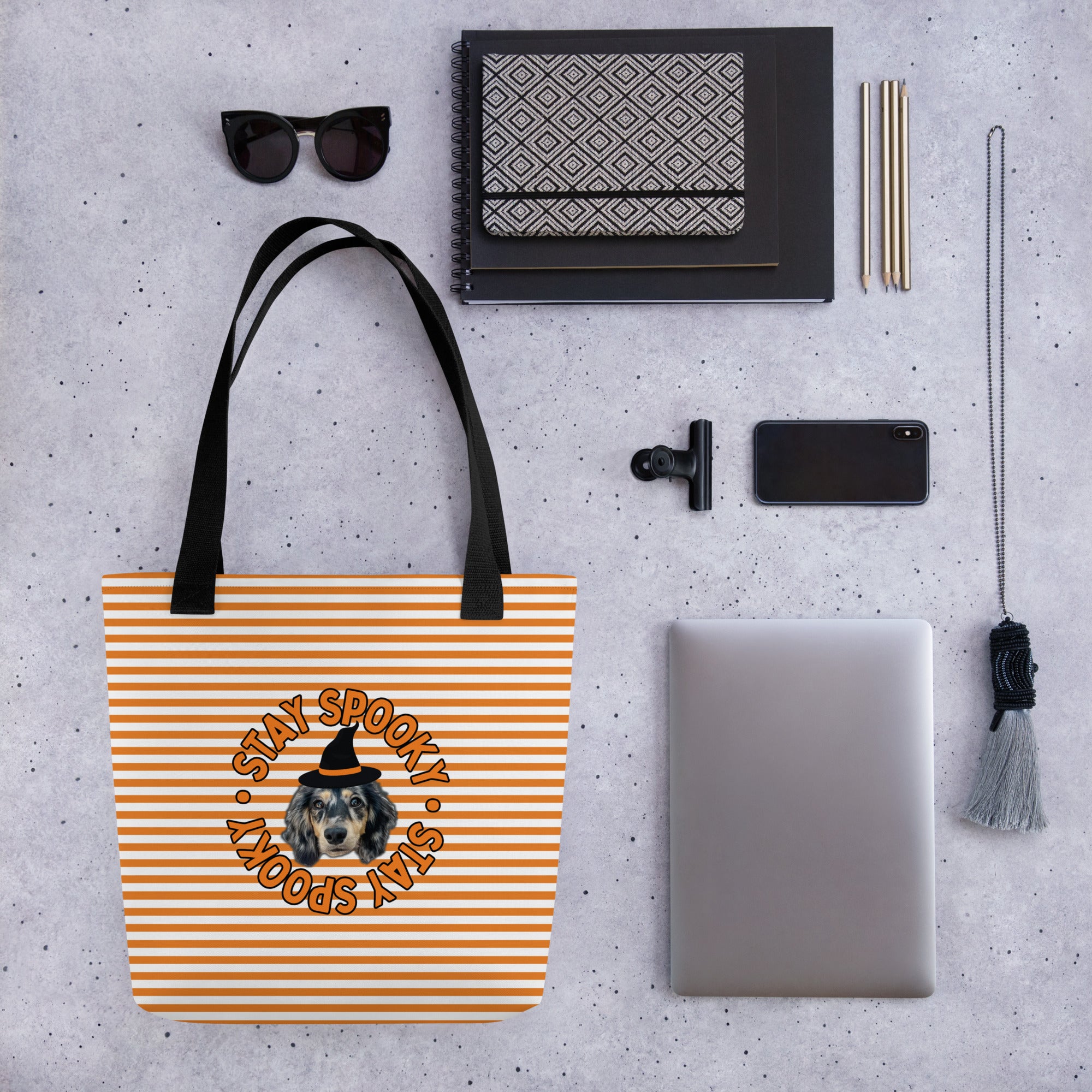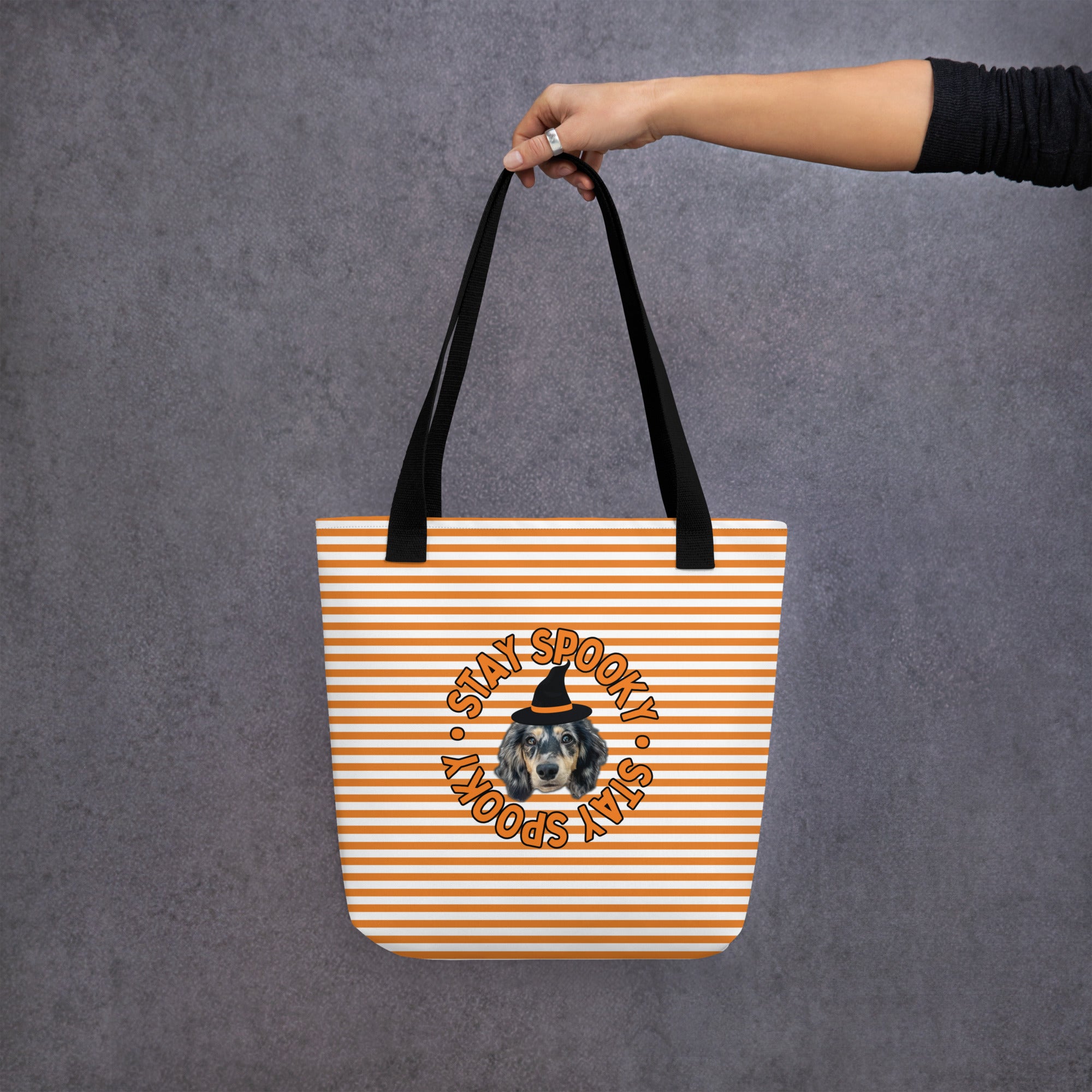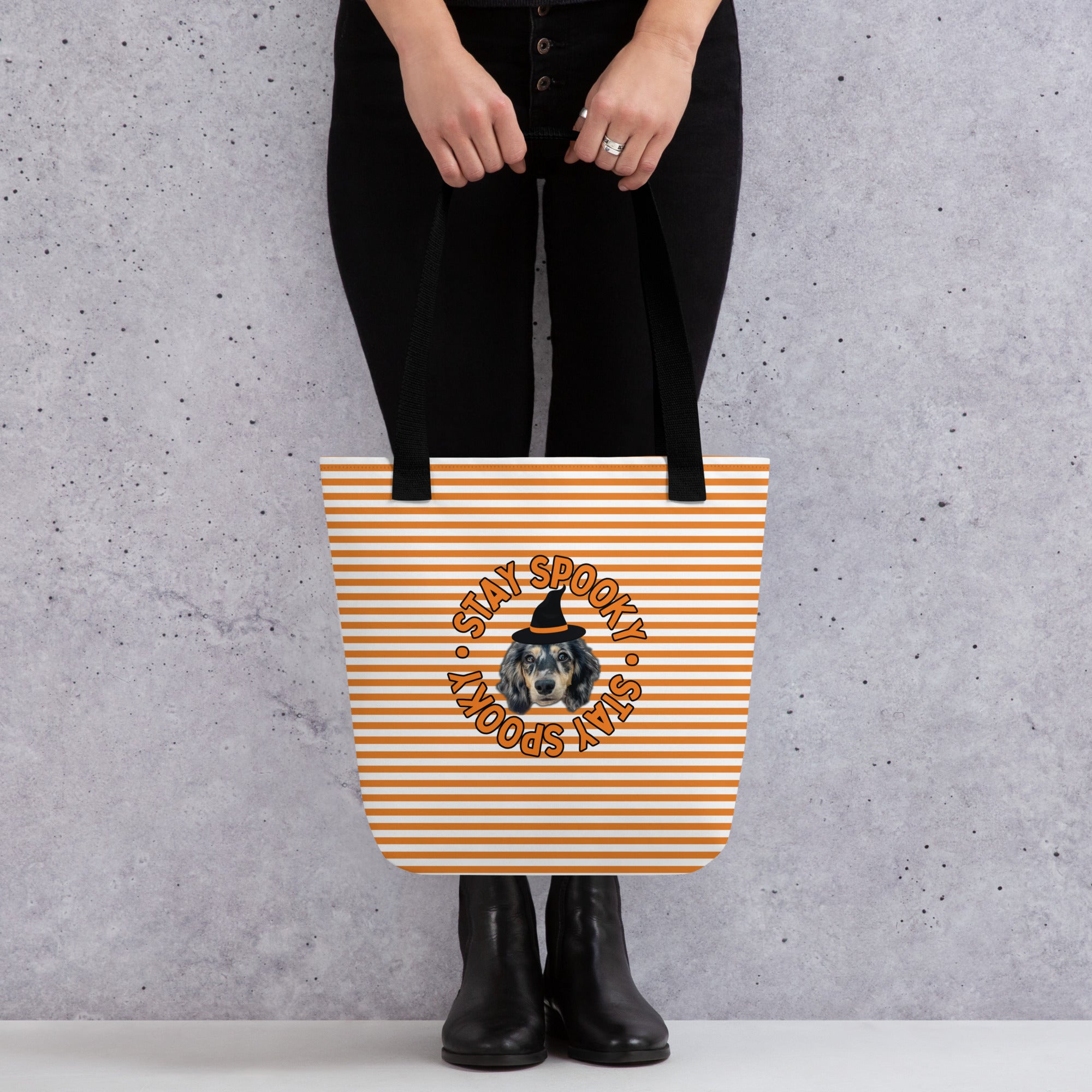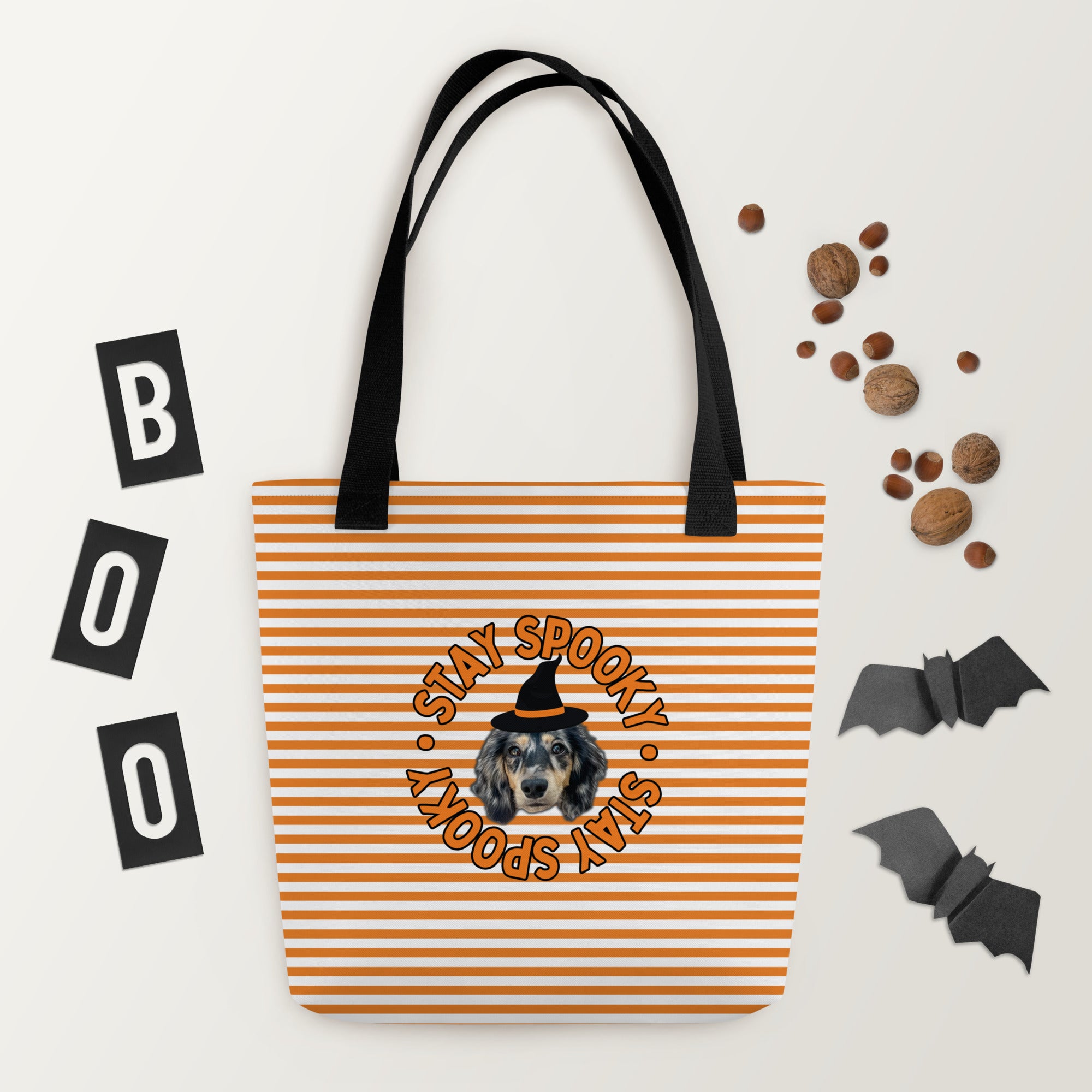 Tote Bag - Custom Pet Portrait 'Stay Spooky' Stripes